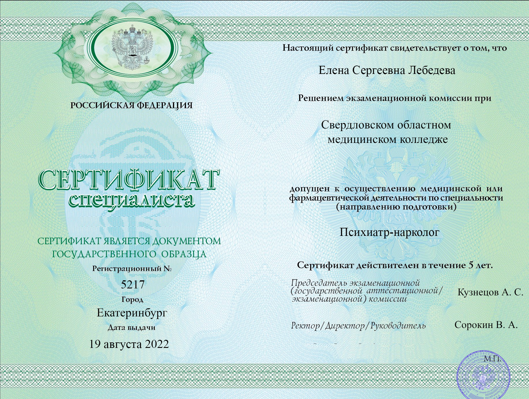 Елена Сергеевна Лебедева врач нарколог клиники доктора Стукаловой в Кирсе